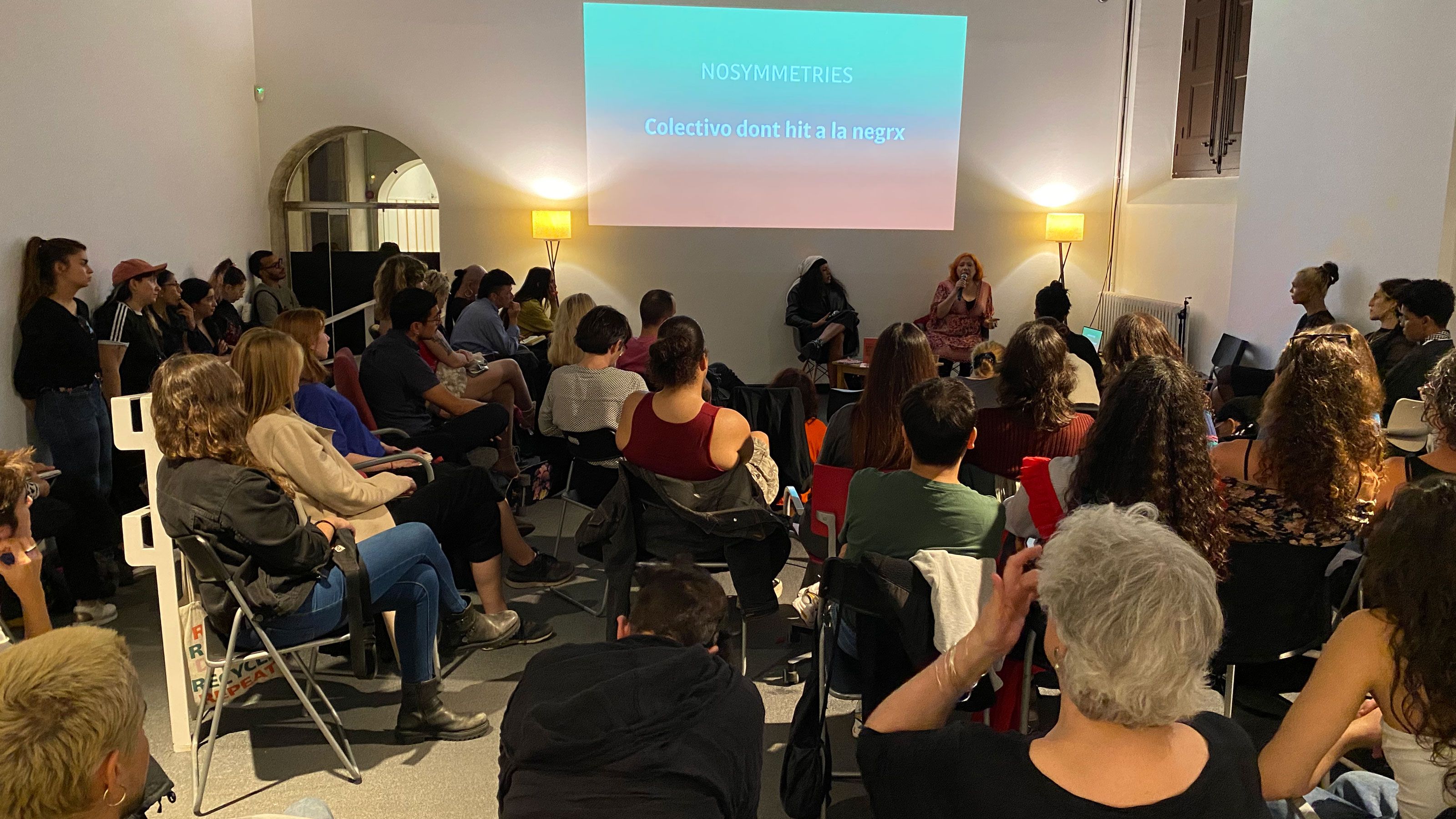 NOSYMMETRIES is an Idensitat project which, within the Creative Europe Care Ecologies programme, engages in research and the activation of artistic processes which tackle various kinds of social inequality. Based upon a residency, its following exhibition, and a symposium, our intention has been to explore the concepts of critical imagination and social creativity, understanding the relationship between them as a collective process embracing a variety of perspectives. Dissidence, disputes, violence, participation, construction of the commons, visibility/invisibility, care, social justice, are just a few of the concepts which have emerged during the residencies, and which will be explored and expanded upon in the exhibition and the symposium.