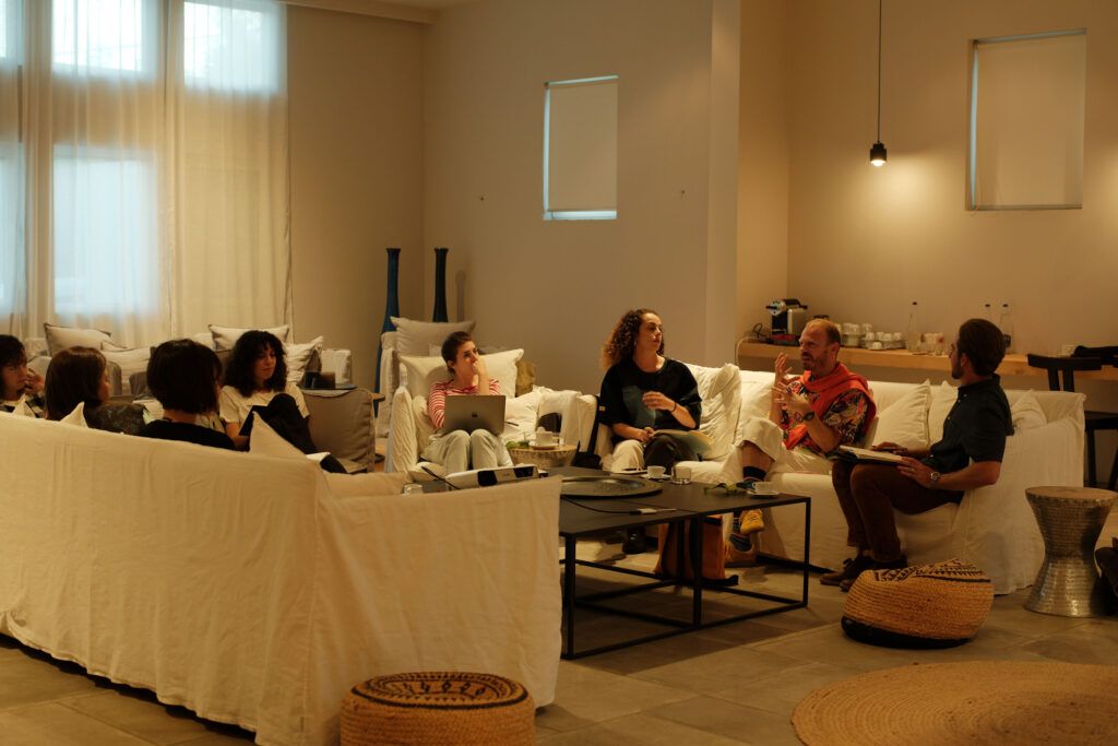 During an intensive, collective week of workshops, discussions, and field research, participants engaged with notions, theories, and practices related to the social history of labour automation and AI, ecologies of care, multi-crisis conditions, feminist labour, land work, activism, community engagement, ecological restoration, degrowth, ethnographic representation, and sustainability. They examined topics such as representation and memory, national and non-national identities, and field research. Participants shared their work, exchanged ideas, and visited historical sites in Crete, including monasteries, local museums, art spaces, Byzantine churches, mills, and weaving workshops, engaging in discussions on landscape, ecology, exclusion, and religion. Above all, they formed a collaborative group, exchanging experiences and knowledge from diverse perspectives. The program will culminate in a collective project curated by the participants, to be presented in summer 2025.