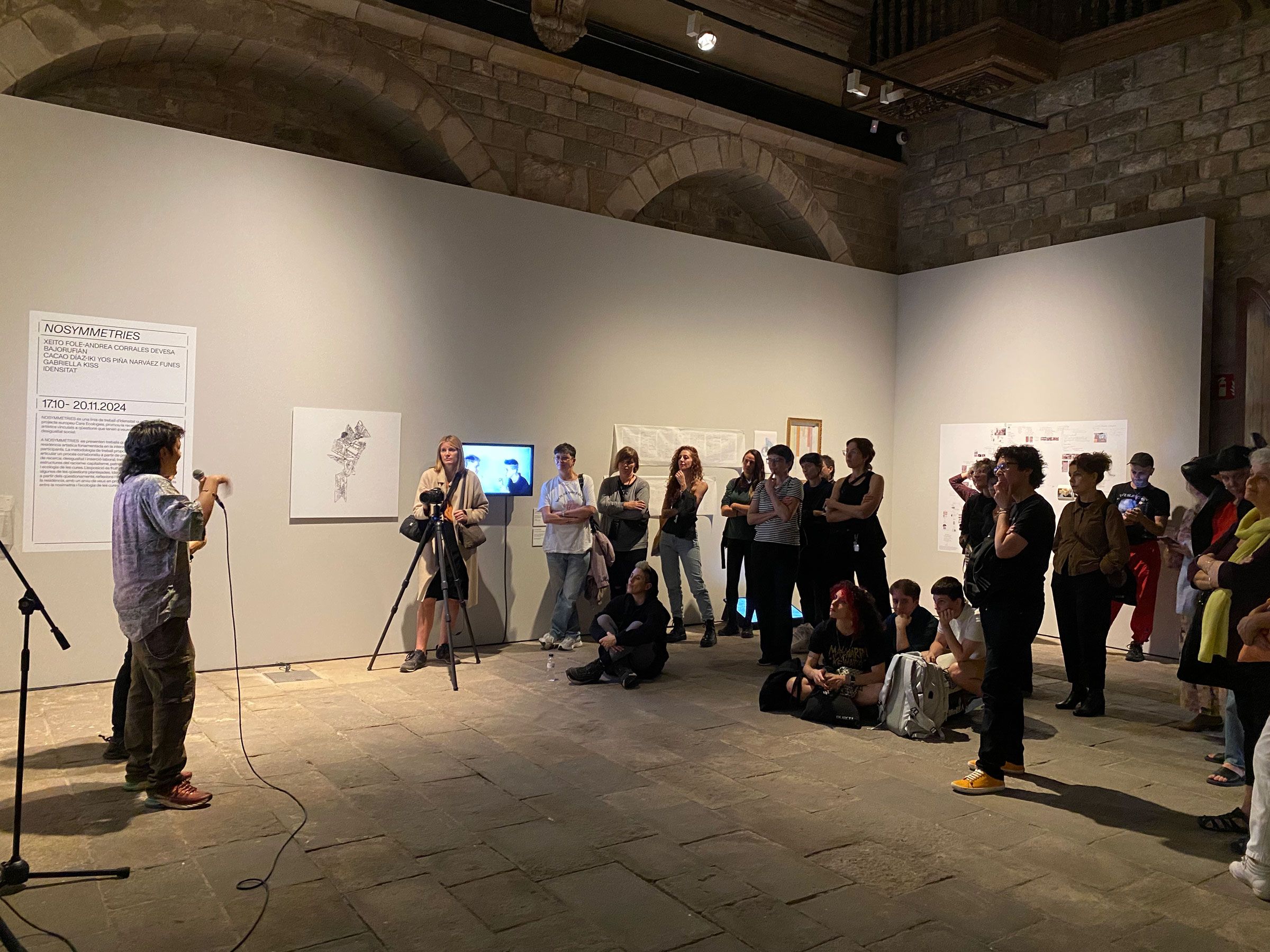 NOSYMMETRIES is a line of work of Idensitat, which, within the Creative Europe Care Ecologies programme, engages in research and the activation of artistic processes which tackle various kinds of social inequality. Based upon a residency, its following exhibition, and a seminar, we wished to explore the concepts of critical imagination and social creativity, understanding the relationship between them as a collective process embracing a variety of perspectives. Dissidence, disputes, violence, participation, construction of the commons, visibility/invisibility, care, social justice, are just a few of the concepts which have emerged during the residencies, and which will be explored and expanded upon in the exhibition and the symposium.